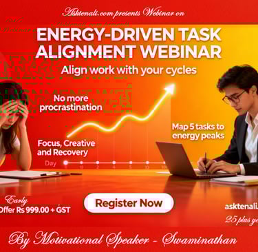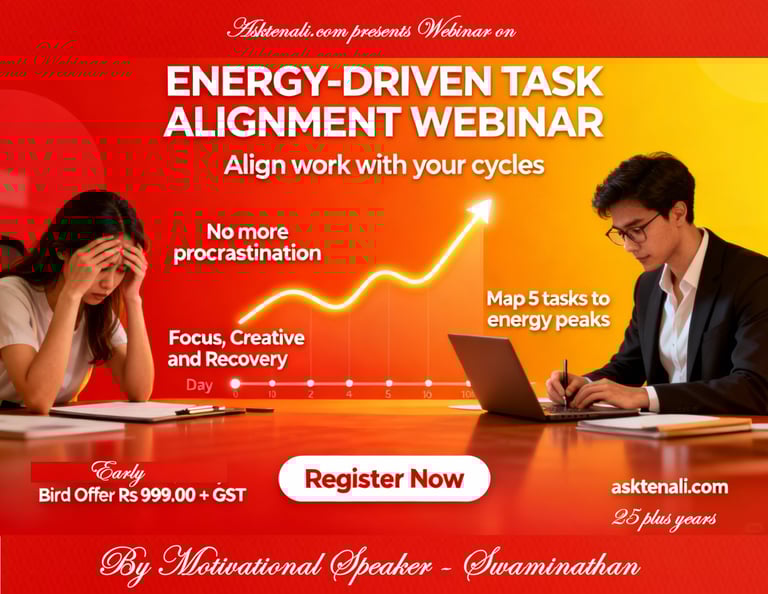 “Boost your productivity by aligning tasks with your natural energy cycles. Join our 90-min webinar for actionable strategies & work-life balance tips.”